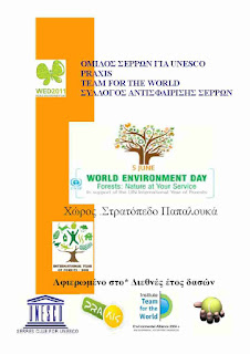 Ο Όμιλος Σερρών για την Unesco συμμετέχει με την παρουσίαση εκπαιδευτικού προγράμματος με θέμα *Το Δάσος*. Μέσα από την διήγηση ενός δένδρου με ανθρώπινη μορφή, για το τι προσφέρει και τι παίρνει από τον άνθρωπο, παρουσιάζετε η ζωή του δάσους ,η προσφορά του στην ζωή του ανθρώπου .