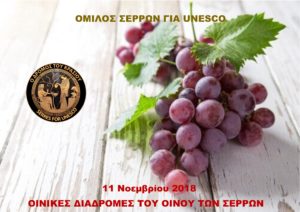 Την Κυριακή 11 Νοεμβρίου 2018 οι Σερραίοι θα τιμήσουν τους οινοπαραγωγούς των Σερρών στο πλαίσιο της Ευρωπαικής Ημέρας οίνου 2018